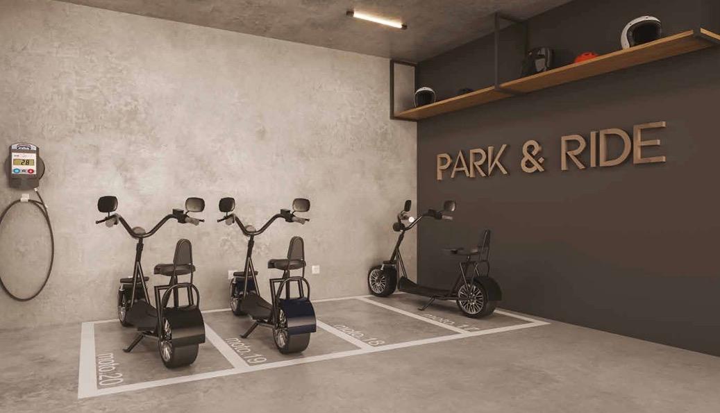 Torre única, 17 andares, 4 por andar, 1 vaga de moto ou 1 vaga Carro